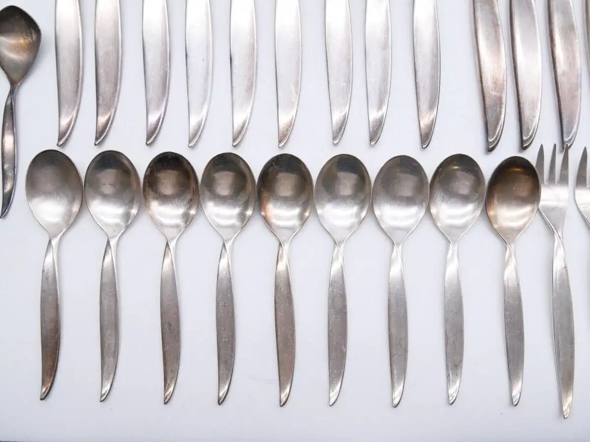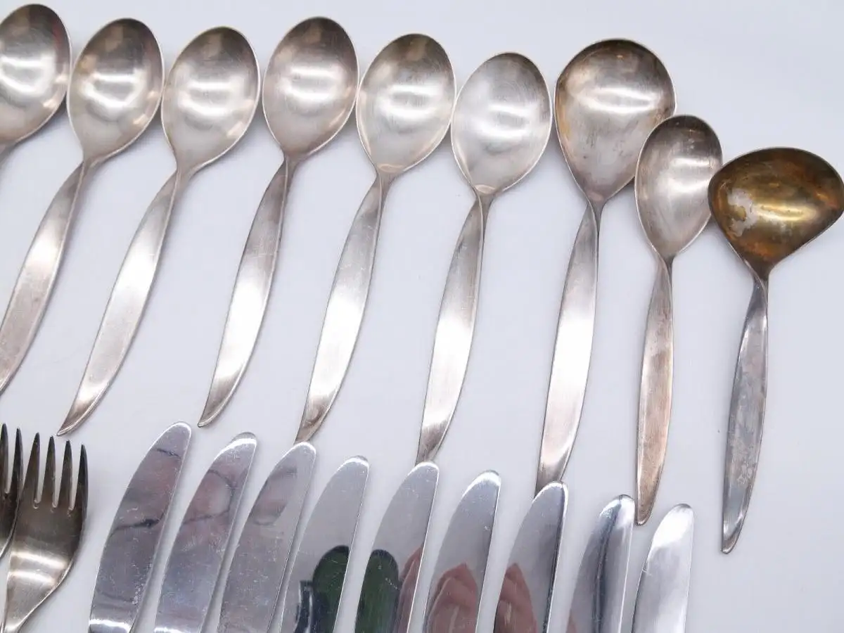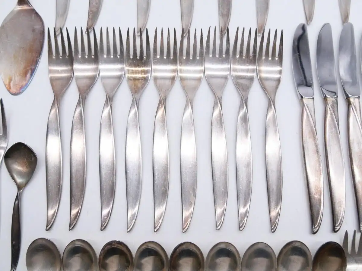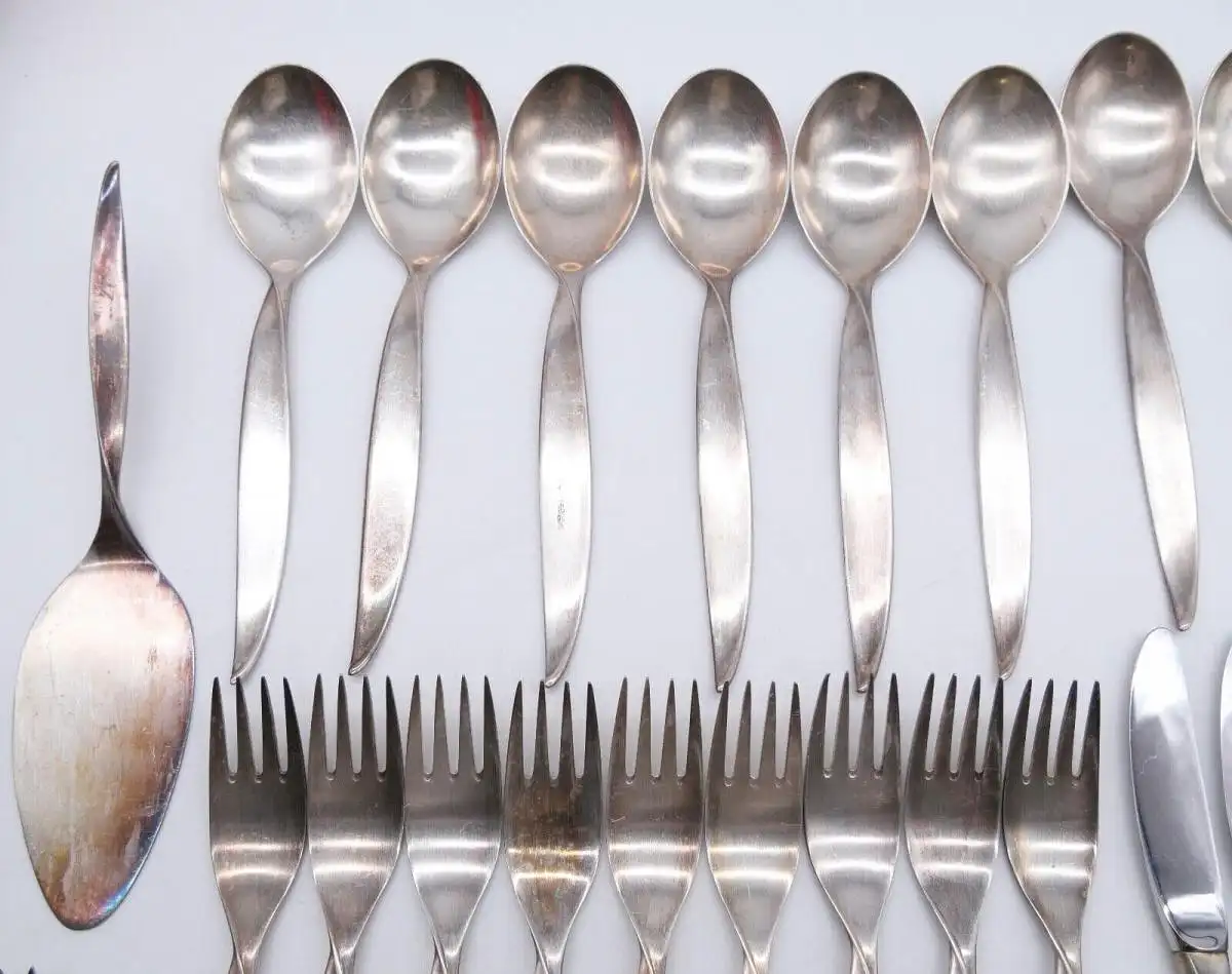 Die Besteckteile sind im gebrauchten Zustand mit Gebrauchsspuren, leichten Kratzern und Verschmutzungen, stark angelaufen, siehe Fotos. Das Besteck ist nicht gereinigt, geputzt oder geschönt worden. Bitte schauen Sie sich die Fotos zum Zustand des Artikels an, da diese Bestandteil der Beschreibung sind.