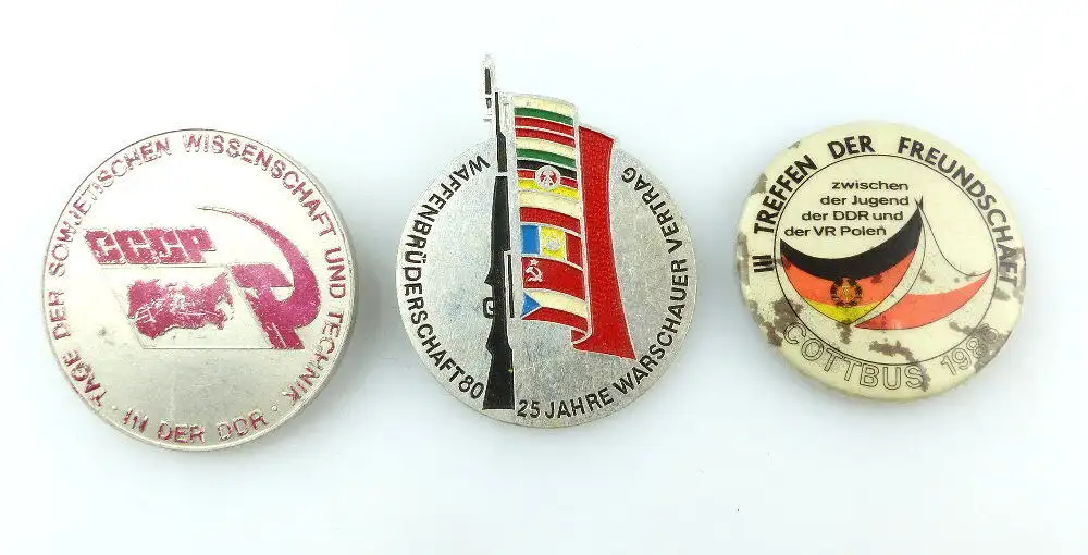 Sie sehen hier auf drei original alte DDR Abzeichen:
