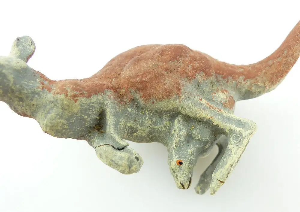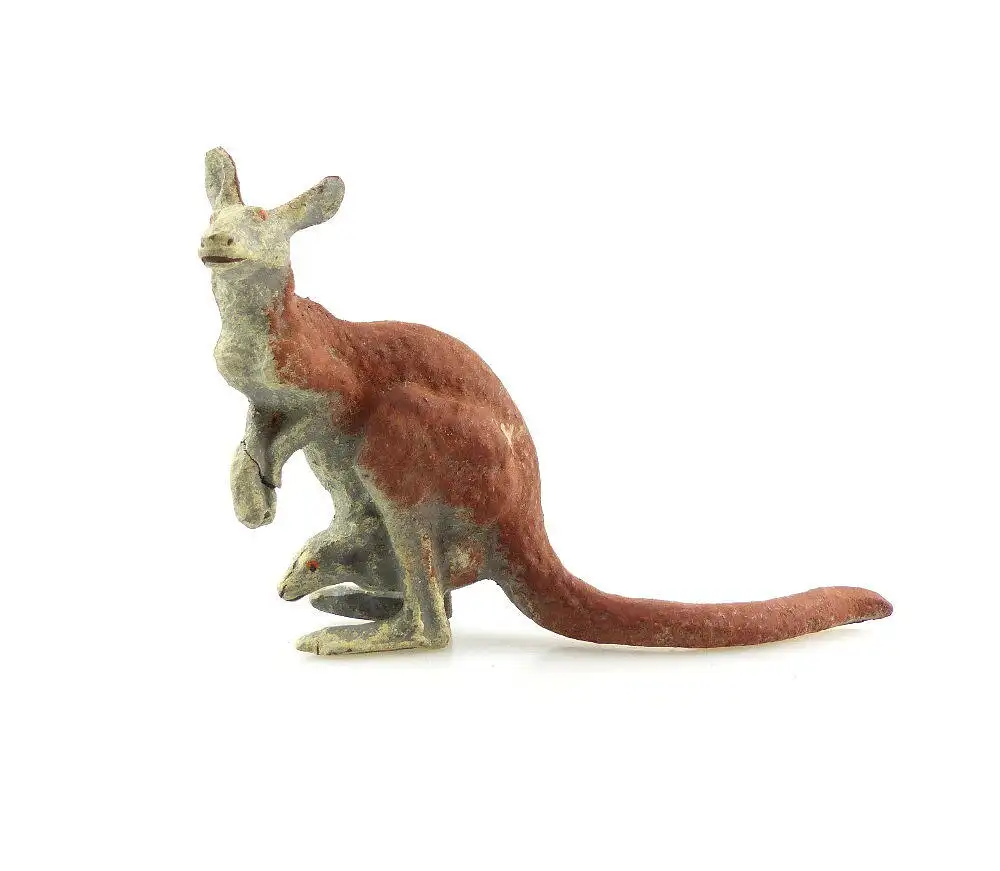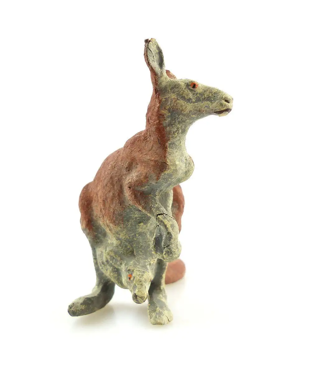Herzlich Willkommen Gern können Sie auch in meine anderen Auktionen reinschauen. Viel Spaß dabei Sie sehen hier auf ein original altes Lineol Tier: Känguru \nGröße ca.: 8,3 x 2,5 x 6,2 cm Das Tier ist im guten, gebrauchten Zustand mit Gebrauchsspuren wie kleinen Rissen und leichten Verschmutzungen. Bitte sehen Sie sich die Fotos zum Zustand des Artikels/der Artikel an, da diese Bestandteil der Auktion sind (siehe Foto oben).