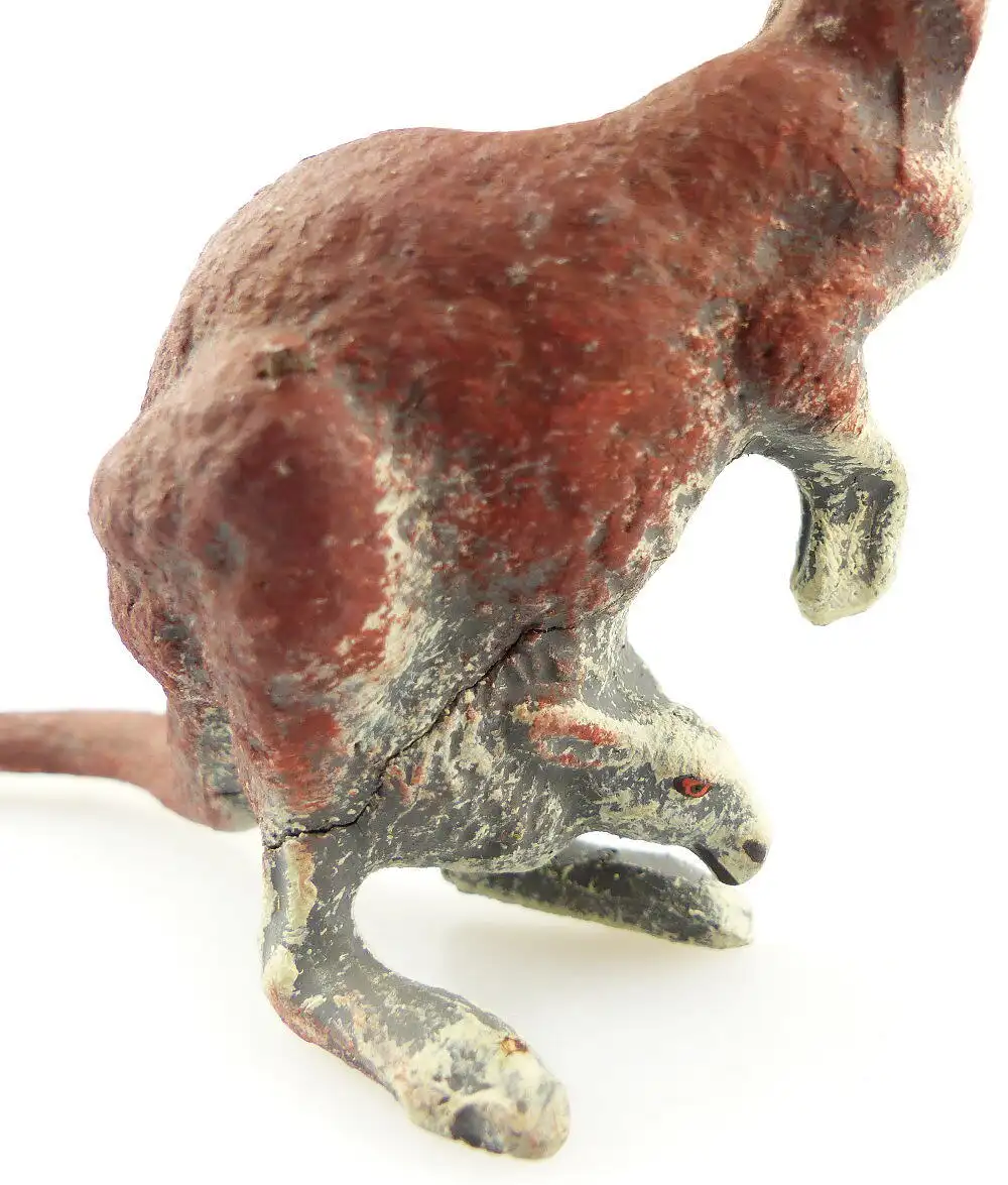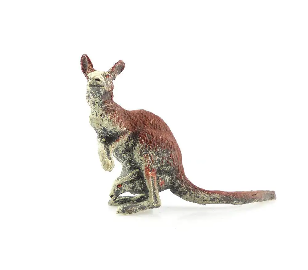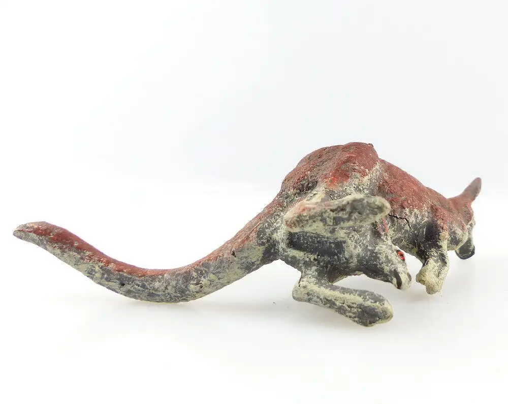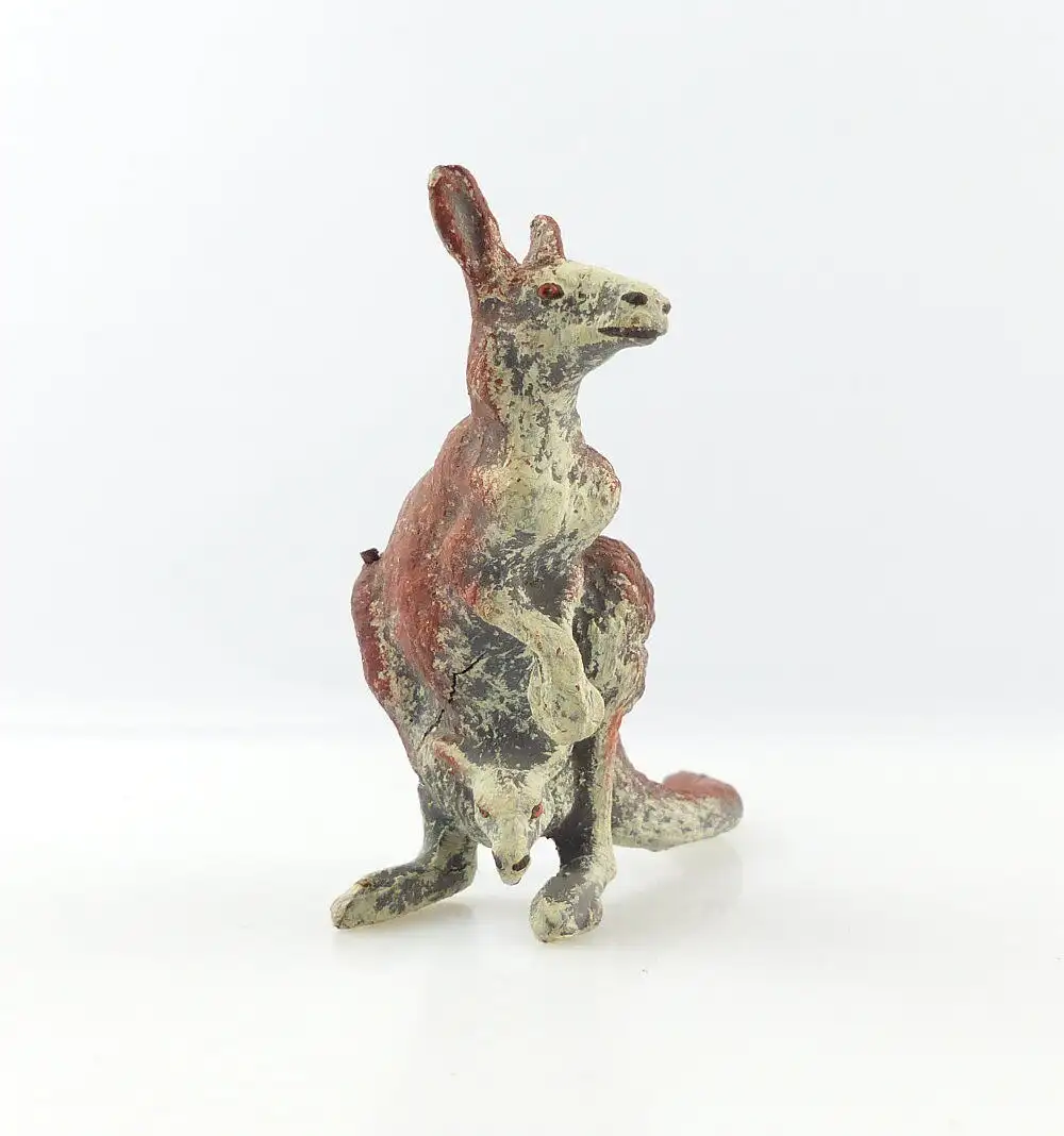 Herzlich Willkommen Gern können Sie auch in meine anderen Auktionen reinschauen. Viel Spaß dabei Sie sehen hier auf ein original altes Lineol Tier: Massefigur: Känguru \nGröße ca.: 8,5 x 2,4 x 6,2 cm Das Tier ist im gebrauchten Zustand mit altersbedingten Verschmutzungen und kleinen Rissen. Bitte sehen Sie sich die Fotos zum Zustand des Artikels/der Artikel an, da diese Bestandteil der Auktion sind (siehe Foto oben).