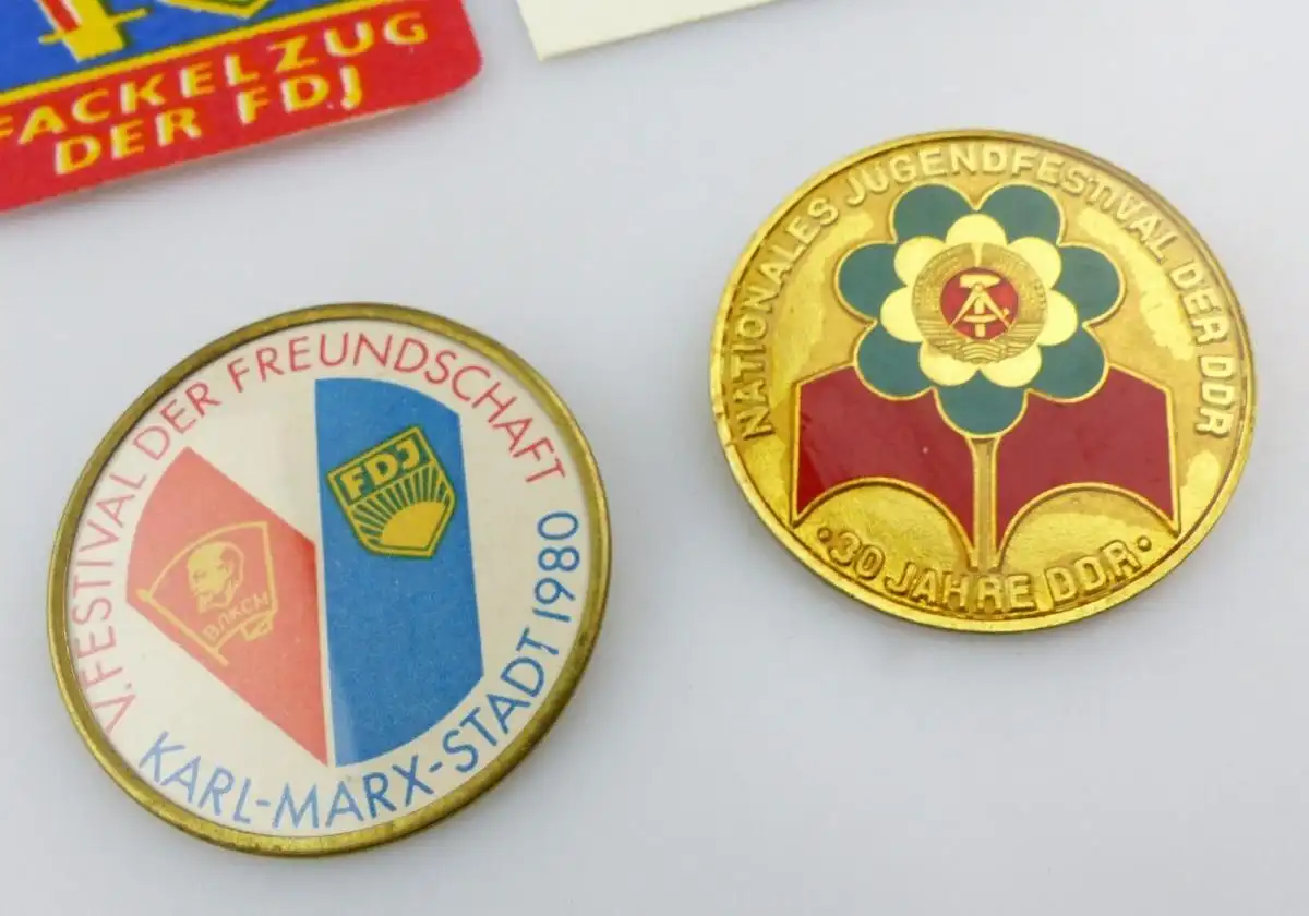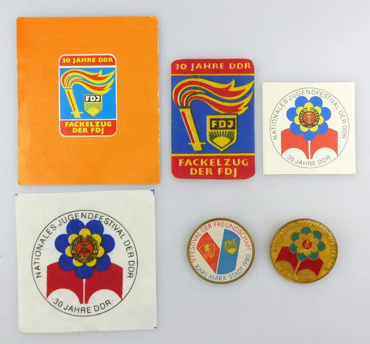 Sie sehen hier auf eine kleine FDJ DDR Sammlung.6 Teile siehe Foto