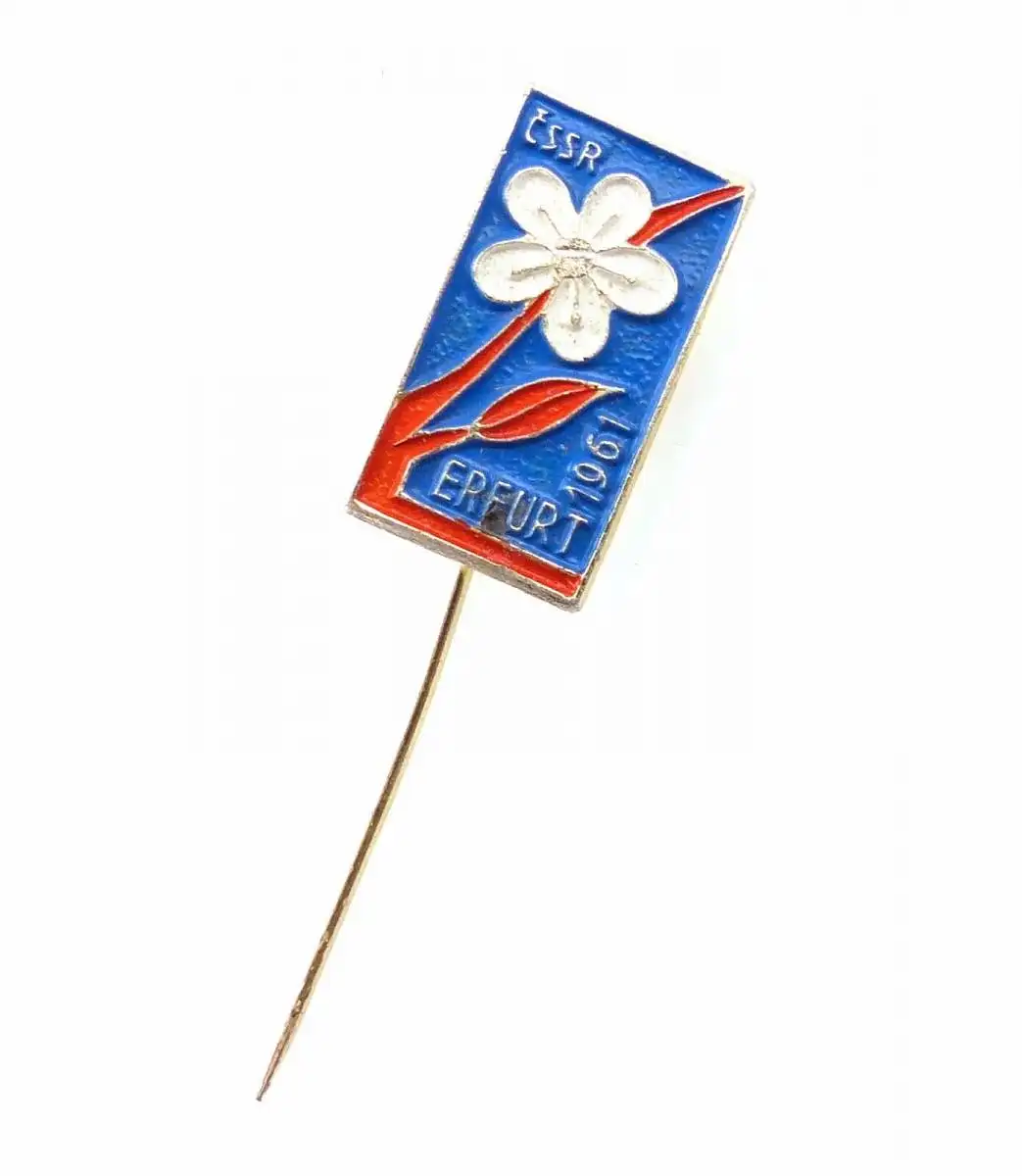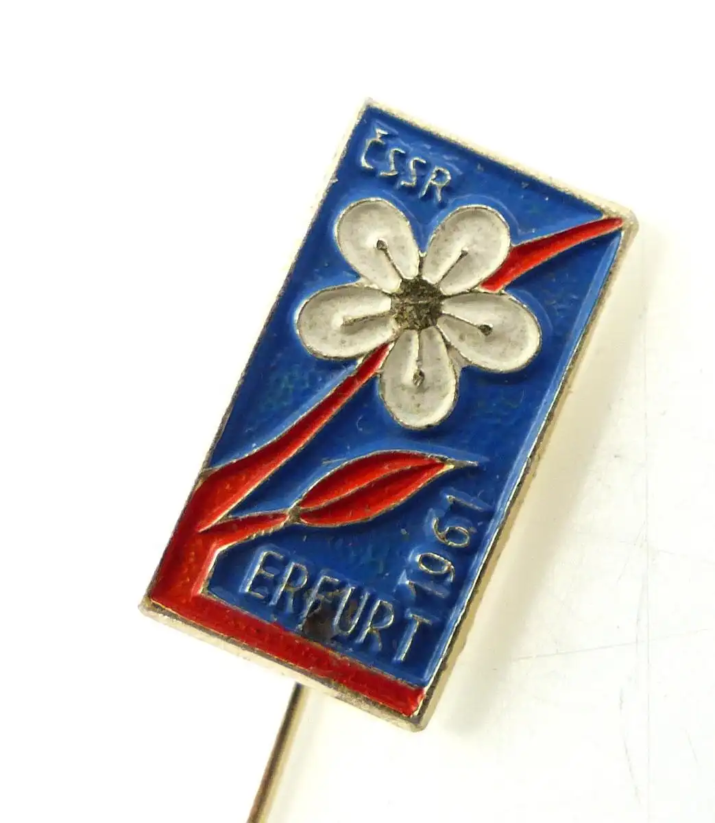 Sie sehen hier auf eine original alte Anstecknadel.1. Internationale Gartenbauausstellung sozialistischer Länder vom 28.04.bis 15.10.1961 in Erfurt.