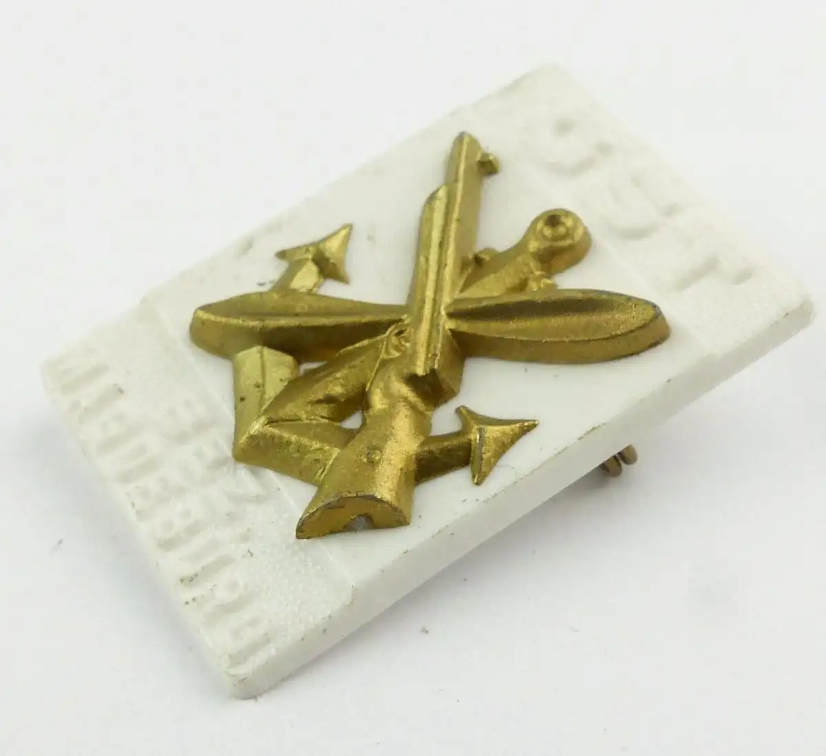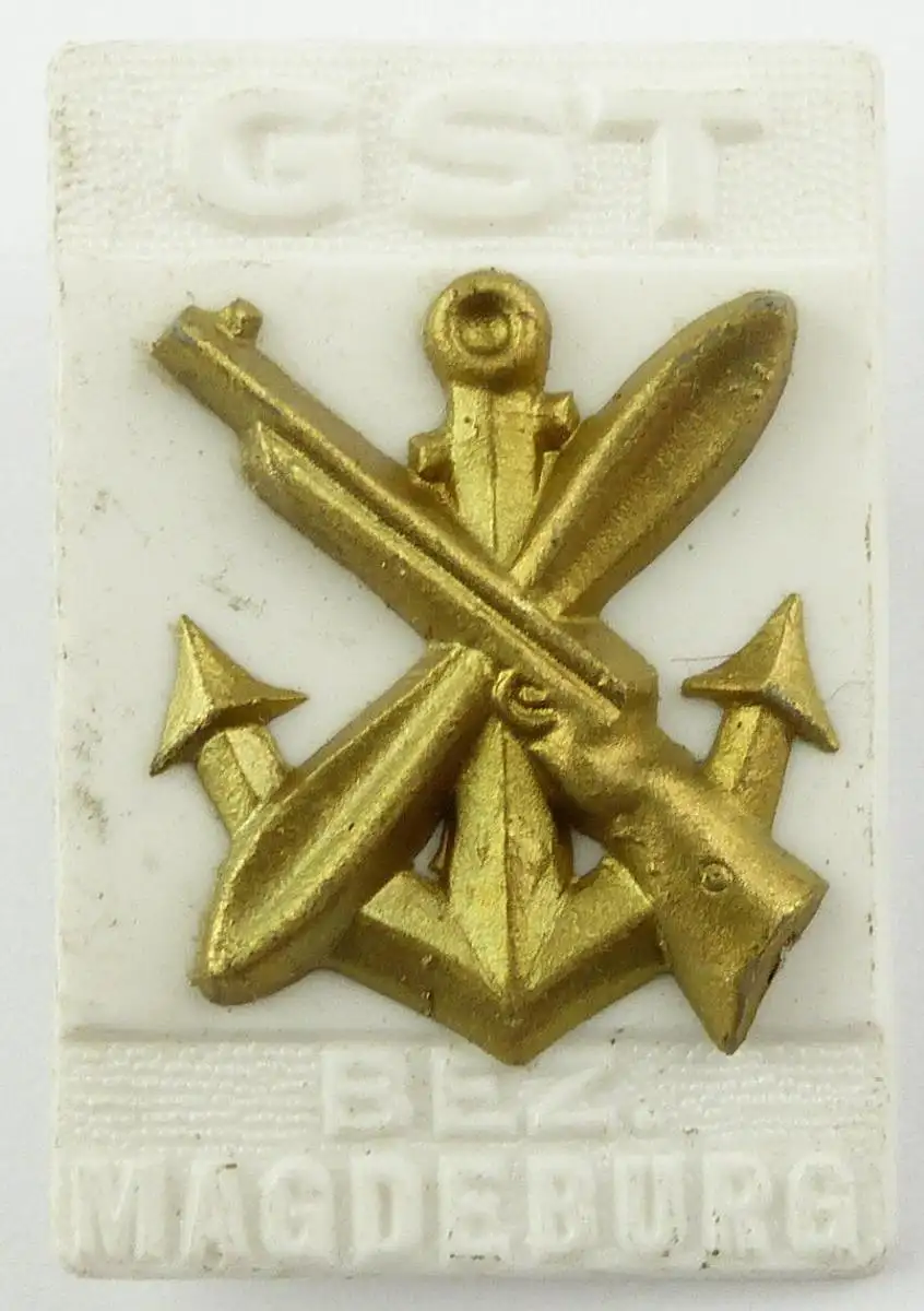 Gern können Sie auch in meine anderen Auktionen reinschauen. Viel Spaß dabei Sie sehen hier auf ein original altes DDR Abzeichen: Festabzeichen der Gesellschaft für Sport und Technik (GST) vgl. Band VII S. 183 Nr. 987 GST-Emblem um 1968 verliehen GST - Gesellschaft für Sport und Technik \nGröße ca.: 32 x 22 mm Farbe: weiß / goldfarben Das Abzeichen ist im guten gebrauchten Zustand mit altersbedingten Gebrauchsspuren, kleinen Kratzern und leichten Verschmutzungen. Die Kanten sind etwas bestoßen. Der Artikel ist nicht geputzt, gereinigt oder geschönt worden. Bitte schauen Sie sich die Fotos zum Zustand des Artikels an, da diese Bestandteil der Beschreibung sind.