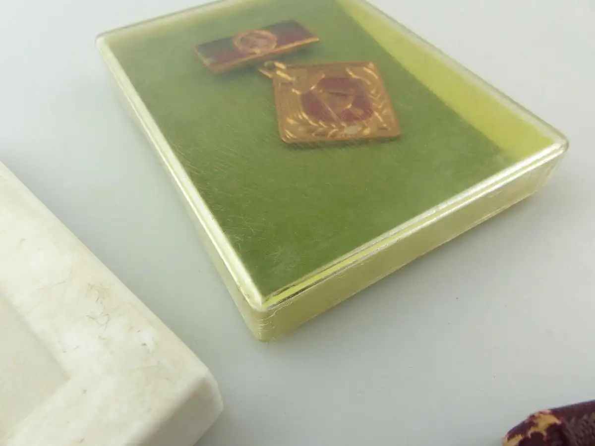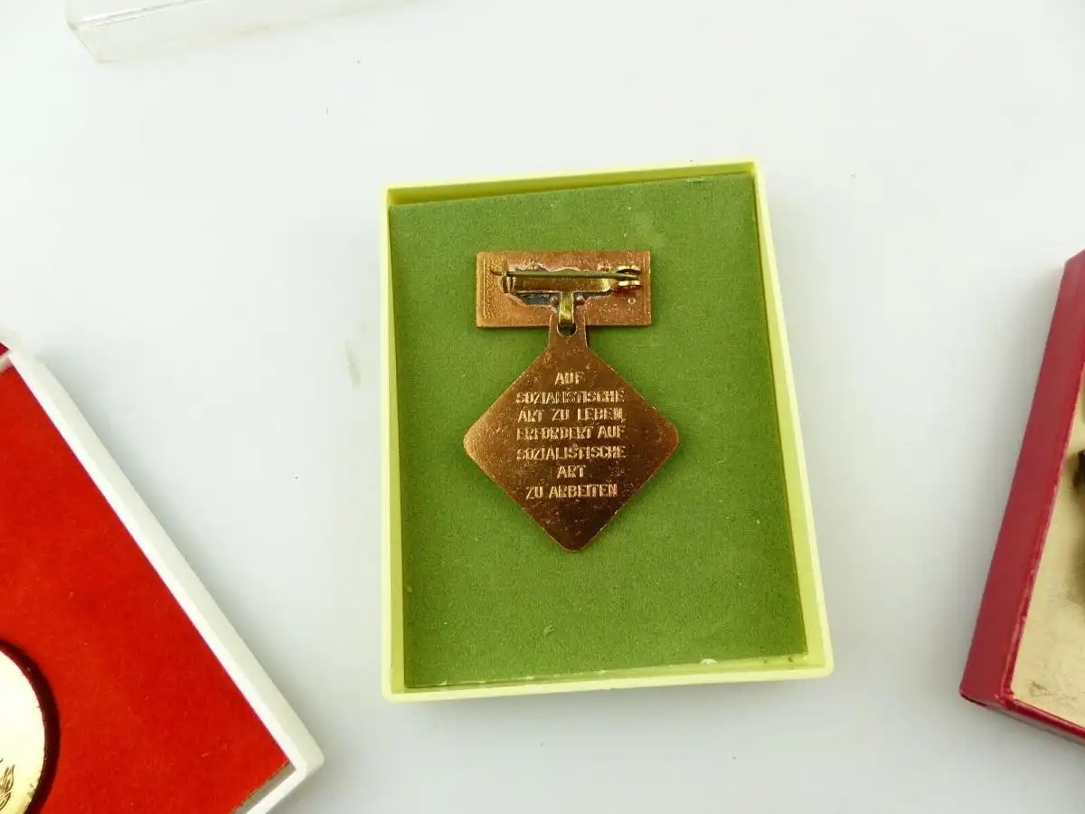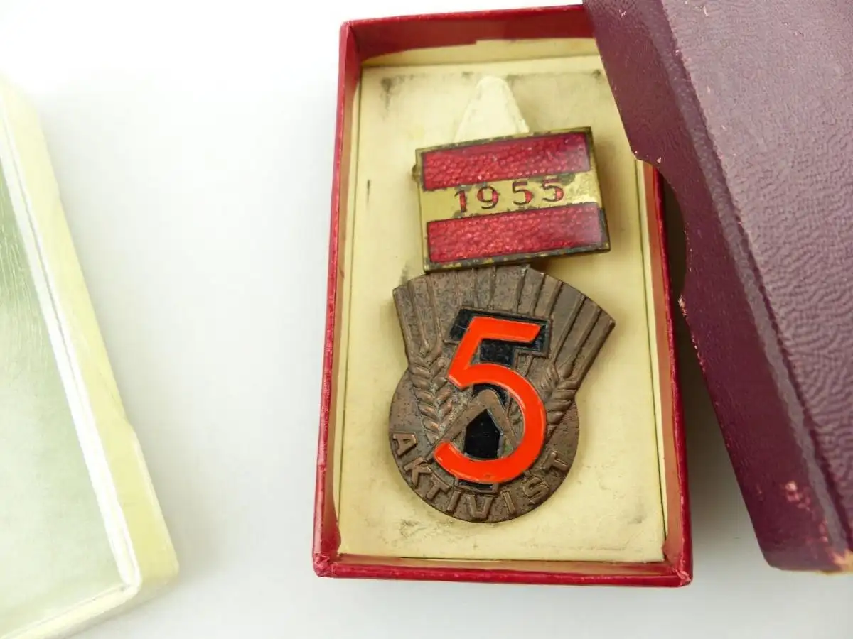 Sie sehen hier auf einen 5 teiligen Posten verschiedener DDR Abzeichen teilweise mit Etui wie abgebildet.