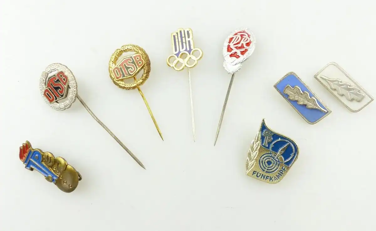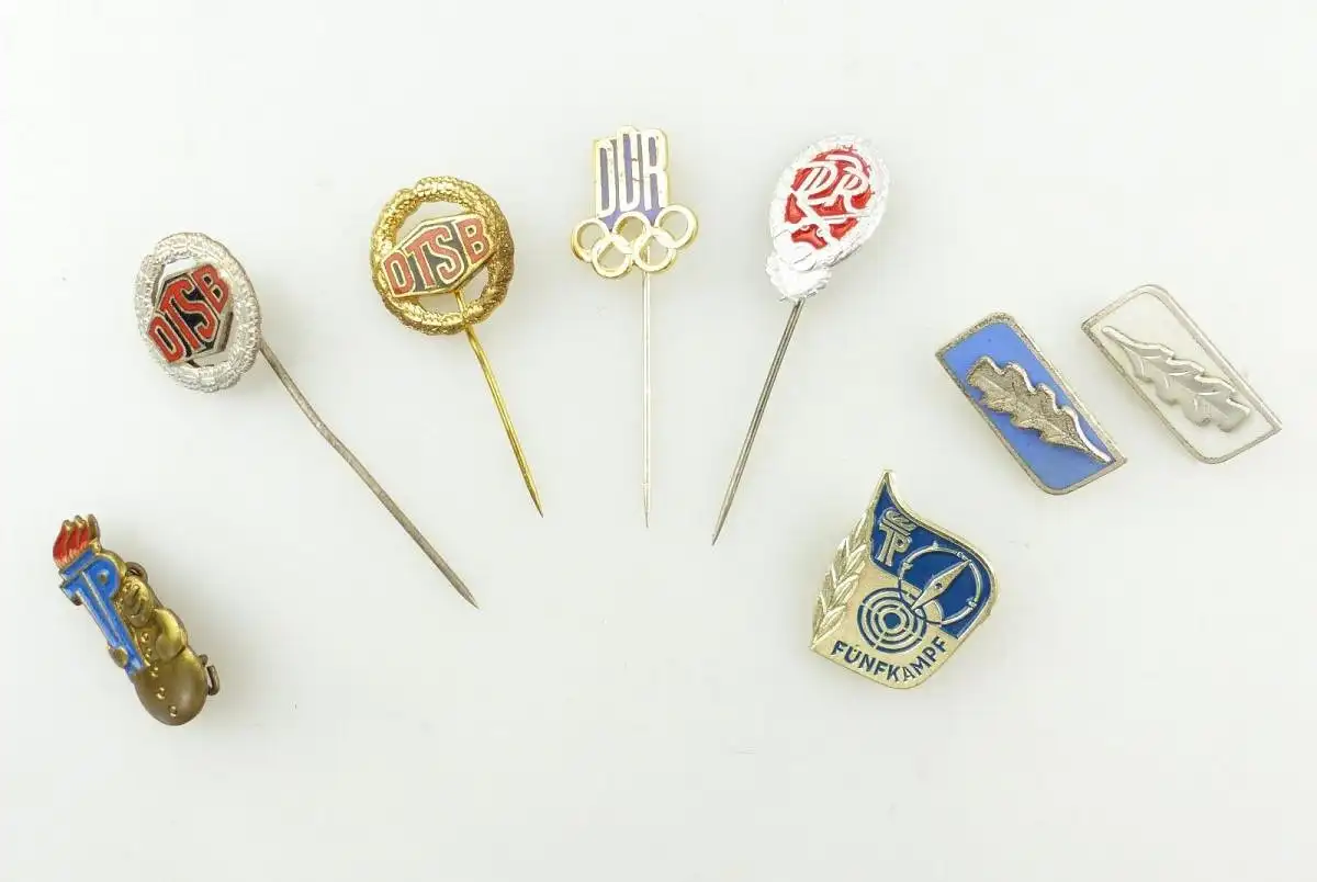 Herzlich Willkommen Gern können Sie auch in meine anderen Auktionen reinschauen. Viel Spaß dabei 8 original alte Abzeichen der DDR: Siehe Fotos z.B. DTSB (Deutscher Turn- und Sportund), Fünfkampf Jungpioniere DDR (Deutsche Demokratische Republik) Die Abzeichen sind im guten gebrauchten Zustand mit Gebrauchsspuren, leichten Verschmutzungen und kleinen Kratzern. Die Kanten sind teilweise etwas bestoßen. Die Abzeichen sind nicht geputzt, gereinigt oder geschönt worden. Bitte sehen Sie sich die Fotos zum Zustand der Artikel an, da diese Bestandteil der Beschreibung sind.