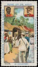 Serie: Rund um die Welt, Scheuers Doppel-Ritter Caffee im Hufeisenpäckl, Bild No. 25, Größe/Zustand: 7x4 , guter Zustand, Original alte Reklamemarke die seinerzeit für die Werbung benutzt wurde
