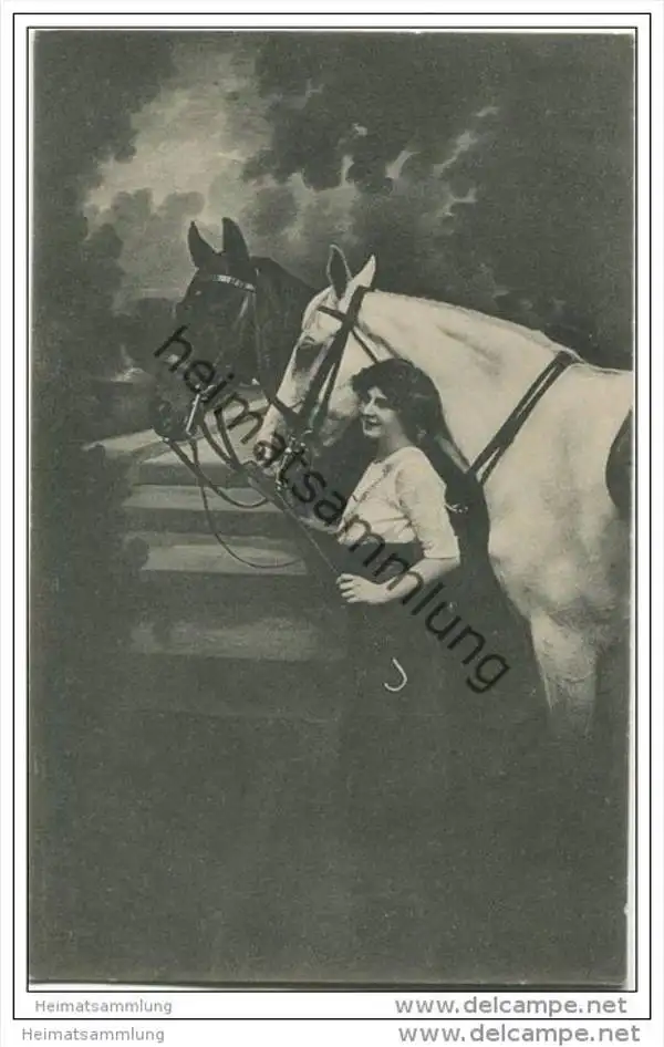 junge Frau mit zwei Pferden ca. 1910 - Verlag A. P. Essen (E9707)