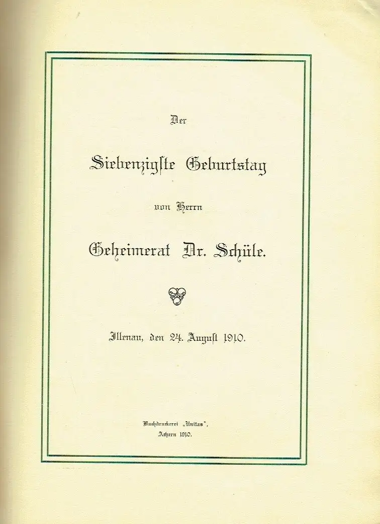 k. A: Der siebenzigste Geburtstag von Herrn Geheimrat Dr. Schüle.