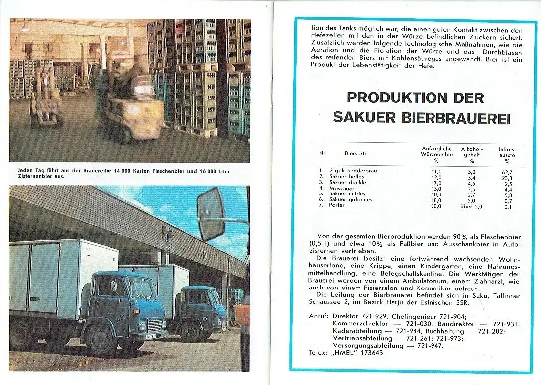 sehr guter Zustand, geringe Gebrauchs- und Alterungsspuren: Umschlag und Seiten teils etwas eselsohrig, Die Firma Saku Õlletehase AS ist die älteste Brauerei und der bedeutendste Getränkehersteller in Estland. Sie ist nach dem Ort Saku benannt, in dem sie ihren Sitz hat. Die Geschichte der Brauerei geht auf das Jahr 1820 zurück, als der deutschbaltische Gutsbesitzer Graf Karl Friedrich von Rehbinder (1764–1841) in Saku eine Brauerei und eine Schnapsbrennerei gründete. 1849 gingen das Gutshaus und die Brauerei in das Eigentum der Familie Baggo über. Diese modernisierte im Jahr 1876 die Brauerei und baute sie zu einem professionellen Betrieb aus. Ab dem Ende des 19. Jahrhunderts war Saku eine der bekanntesten Brauereien Estlands. Einen Aufschwung erlebte die Firma insbesondere durch die Fertigstellung der Eisenbahnverbindung zwischen Saku und Tallinn 1899. Im selben Jahr wurde die Brauerei in eine Aktiengesellschaft umgewandelt. In der Zeit der Estnischen SSR war die Brauerei ein Staatsbetrieb. Vor allem 1976 wurden die Anlagen noch einmal erweitert. Nach Wiedererlangung der estnischen Unabhängigkeit wurde die Saku Brauerei privatisiert und als Joint Venture wiederbelebt. Seit 1995 ist sie wieder eine Aktiengesellschaft. (Wikipedia) im Heft: Geschichtliche Übersicht - auf Ausstellungen erhaltene Medaillen - Etiketten von Biersorten aus dem 19. und vom Anfang des 20. Jahrhunderts - Betriebsgeschichtliche Entwicklung - Produktion der Sakuer Bierbrauerei, kartoniert, ca. 14 x 20, 24 Seiten mit zahlreichen Bildern