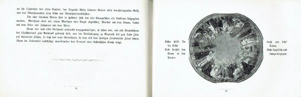 guter Zustand, Gebrauchs- und Alterungsspuren: Deckel und die ersten 4 Blatt am senkrechten Rand mit Blessuren - Umschlag und Seiten teils etwas eselsohrig, zur Datierung: Jugendstil-Ornamente auf der ersten Textseite Druck bei der Badenia AG in Karlsruhe Beschreibung eines Rundgangs, des Innenausbaus und der Bilder, Softcover, ca. 21 x 13, 23 Seiten mit 9 Bildern