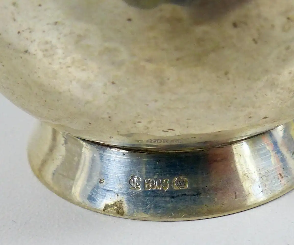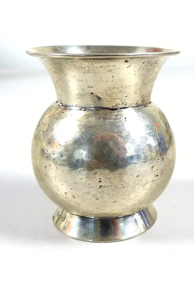 Schauen sie auch gerne in unsere Auktionen und in unseren Shop kleine Vase aus massivem 830 Silber Größe ca. Länge 6,7 cm x Durchmesser 5,7 cm, Gewicht 47,2 Grammmit leichten Gebrauchsspuren, 2 kleine Dellen oben, nicht gereinigt, nicht geschönt Die Fotos sind Bestandteil des Angebots. Auktionbedingungen über Zahlung und Versand: Bezahlung fällig nach Auktionsende. Keine Schecks!!! No checks!!! Sie werden innerhalb von 24 Stunden nach Auktionsende von uns über ebay automatisch angeschrieben. Unser Unternehmen nimmt an dem Befreiungssystem gem. § 6 Abs. 3 (ab 01.01.2009 § 6 Abs. 5) VerpackV teil, wir haben einen FREISTELLUNGSVERTRAG mit der Landbell AG geschlossen. Bitte beachten Sie auch meine anderen Auktionen! Antikhandel Wilfried Boschan Steuer ID DE 167790774 Mehrwertsteuerhinweis: Unsere Artikel unterliegen der Differenzbesteuerung, nach §25a UStG