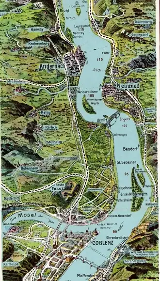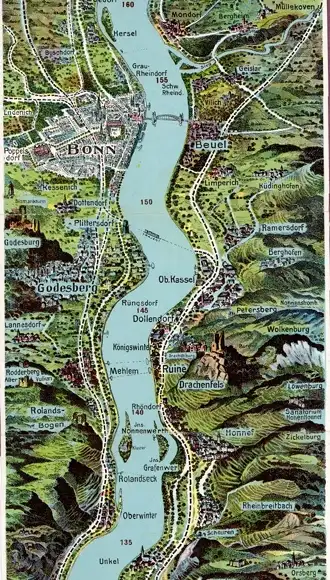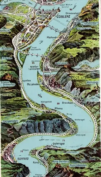 kleines Heft Rhein " Rheinlauf von Mainz bis Köln, GEBIRGSZÜGE IN RELIEFMANIER"