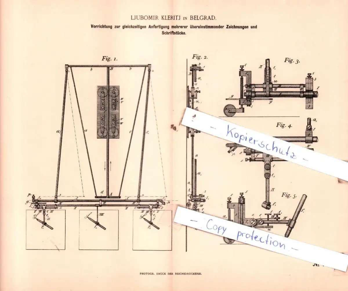 Patent: Vorrichtung zur gleichzeitigen Anfertigung mehrer übereinstimmender Zeichnungn