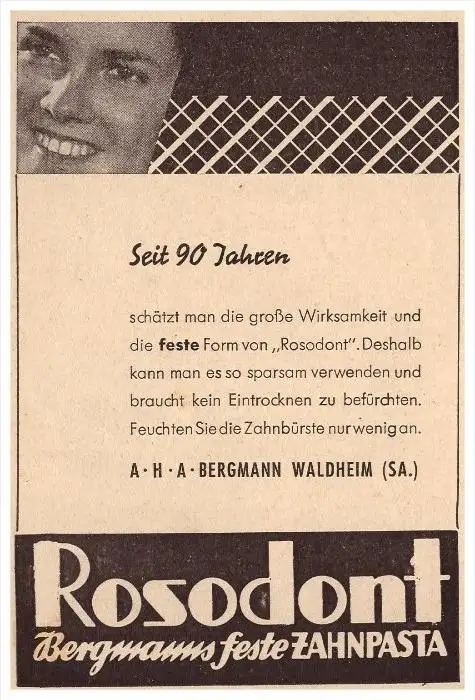original Werbung - 1941 - ROSODONT Zahnpasta , A. Bergmann in Waldheim i. Sa. !!!