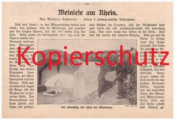 original Zeitungsbericht - 1911 - Weinlese am Rhein , Weinbau , Winzer , Weinberge !!!