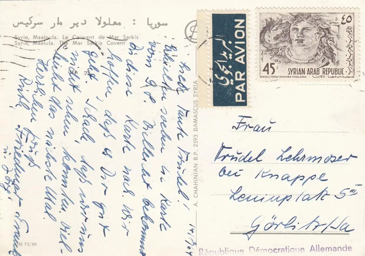 post card 1964, Maalaoula air mail to Görlitz DDR