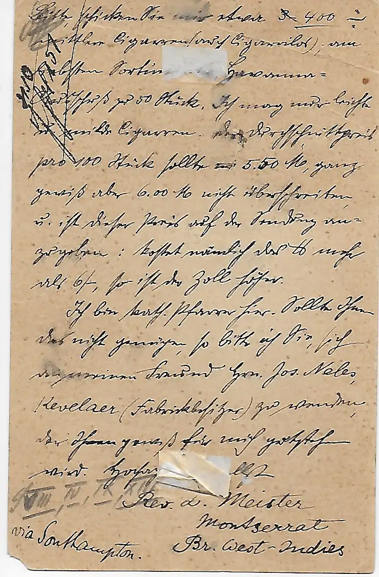 post card Monserrat /Barbados nach Geldern, Taxe - Nachgebühr 1906