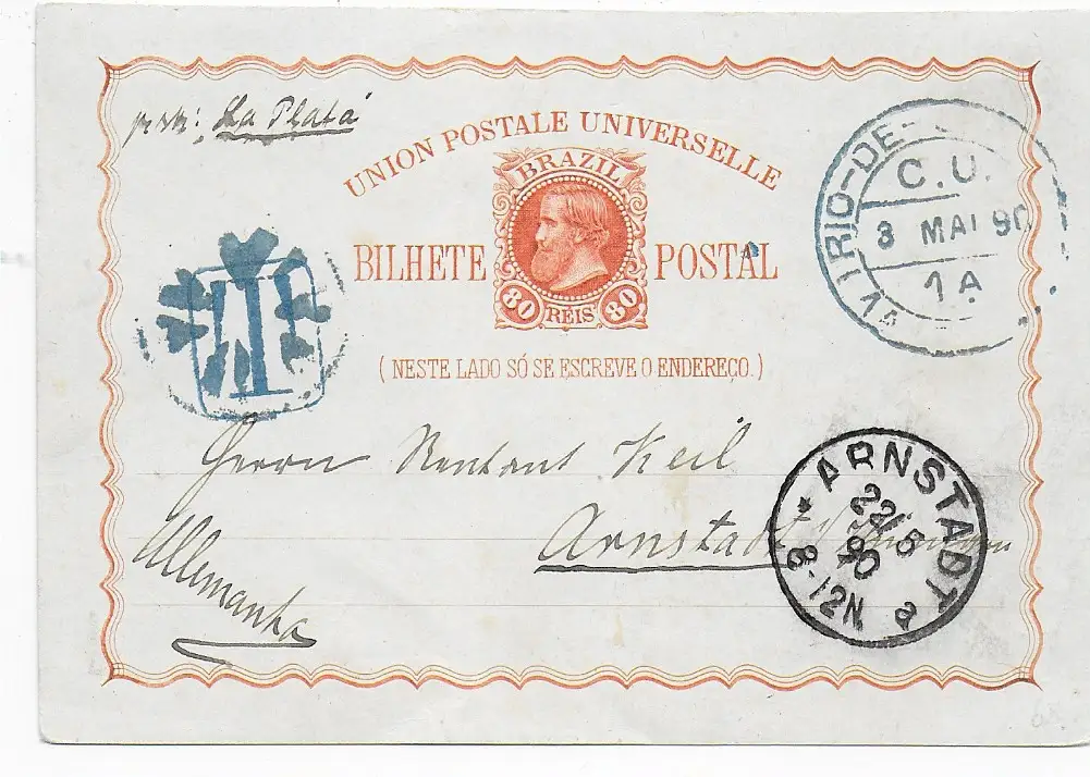 post card Rio de Janeiro 1890 to Arnstadt/Germany: Taxe