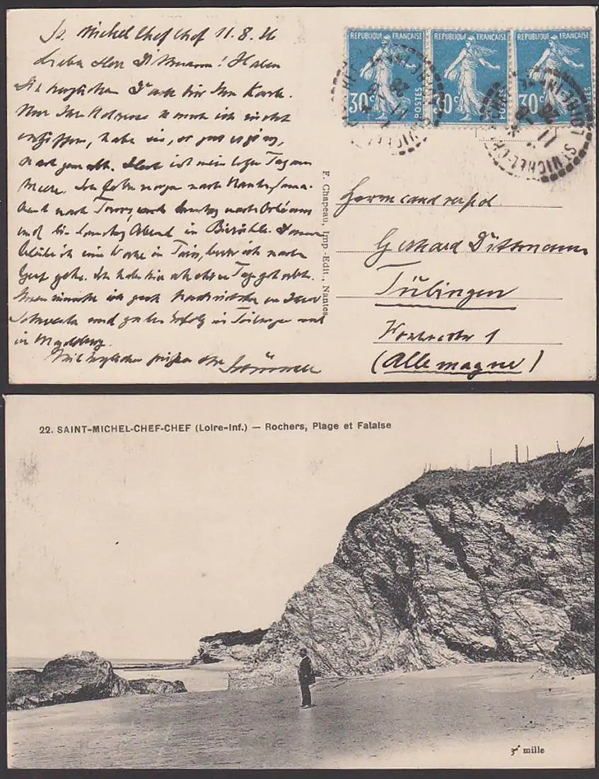 saint-Michel-chef-chef (Loire-Inf. Rochers, Plage at Fatalse nach Allemagne Tübingen 11.8.1936