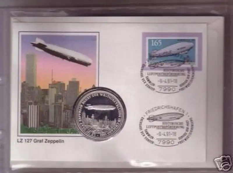 mit großer Zeppelin Silber Medaille (oder versilbert) in Stempelglanz, sehr gute Erhaltung siehe Bild,