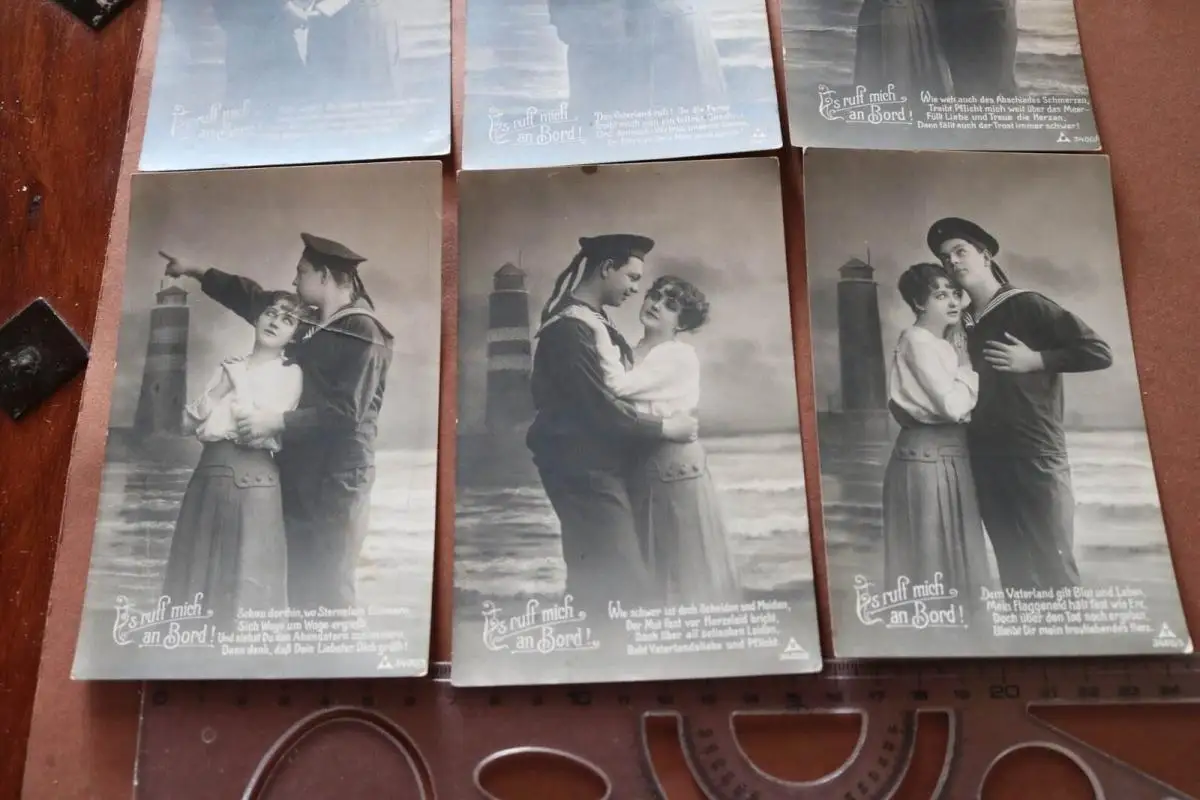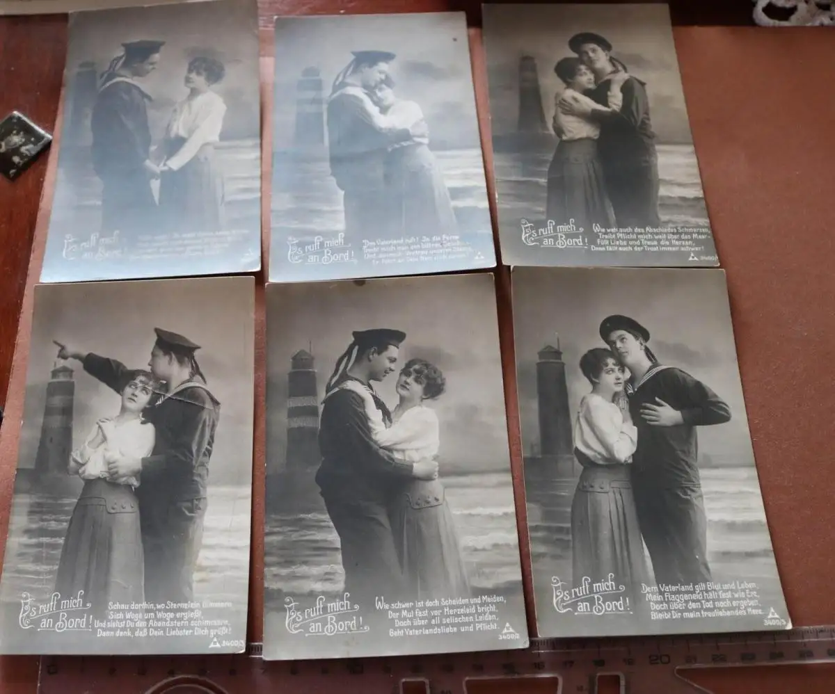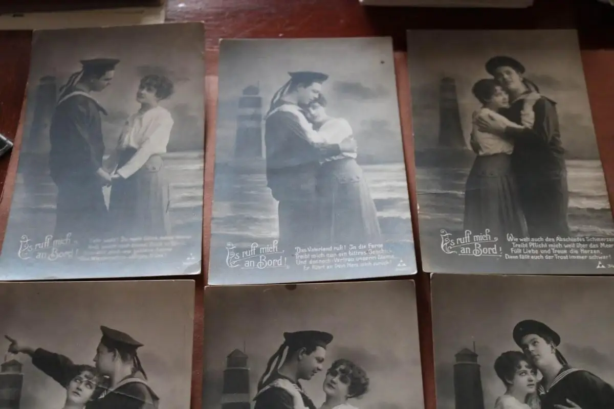 Biete hier sechs tolle alte Karten - Es ruft mich an Bord - Matrose mit Frau an