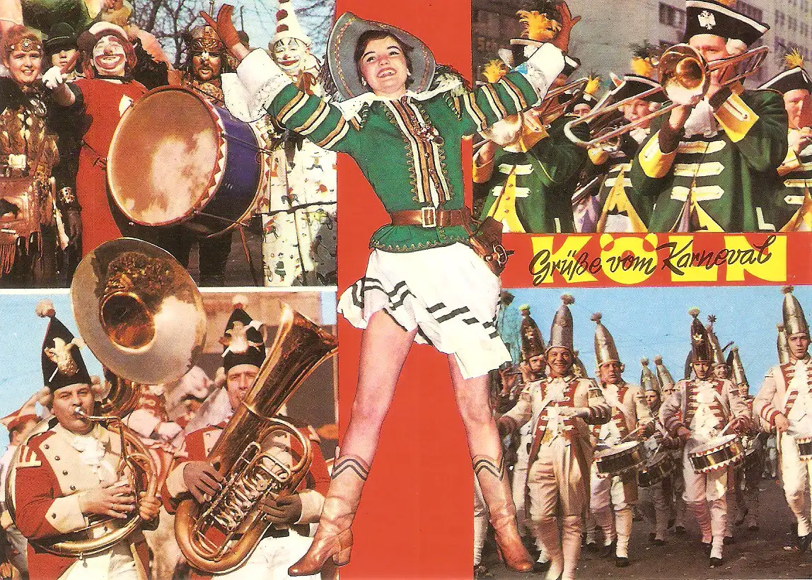 Ansichtskarte Deutschland - Köln - Grüße vom Karneval / Marketenderin des Reitercorps Jan von Werth und Musikgruppen (2924)