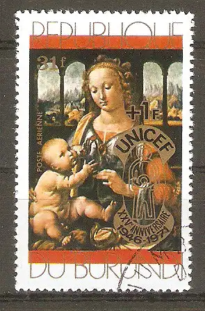Briefmarke Burundi Mi.Nr. 809 A o 25 Jahre Kinderhilfswerk der Vereinten Nationen (UNICEF) 1971 / Leonardo da Vinci "Madonna mit Kind" #20241426
