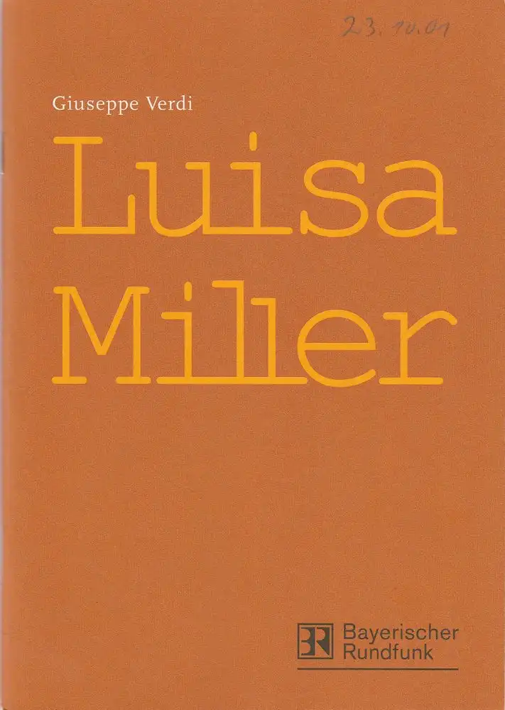 Bayerischer Rundfunk, Thomas Siedhoff, Markus Laska, Anne Henrike Wasmuth: Programmheft LUISA MILLER Aufführung aus Anlass des 100. Todestages von Giuseppe Verdi. 23. Oktober 2001 Prinzregententheater.