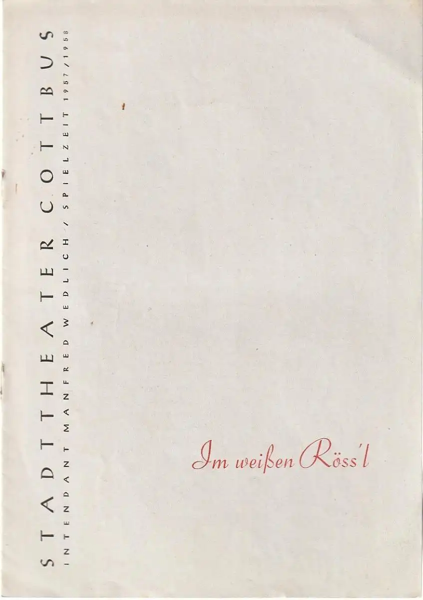 Intendanz des Stadttheaters Cottbus, Manfred Wedlich, R. Freiesleben, Walter Böhm: Programmheft Ralph Benatzky IM WEISSEN RÖSSL Spielzeit 1957 / 58 Heft 19.