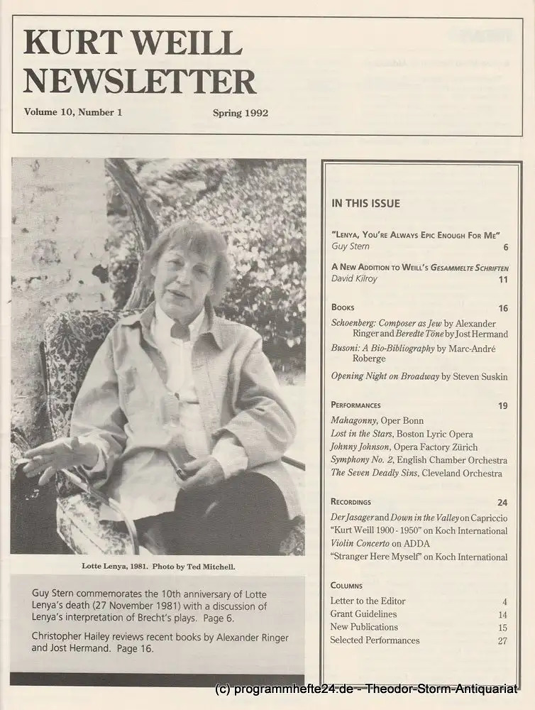 Guy Stern: Lenya, You´re always epic enough for me / David Kilroy: A new addition to Weill´s Gesammelte Schriften - Theaterprogramm, Opernprogramm, Ballettprogramm, Musicalprogramm, Konzertprogramm, Theatermemorabilia, Programmhefte Sammlung, deutsche Theatergeschichte.
