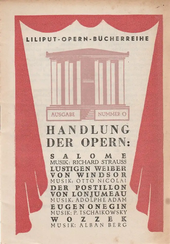 Handlung der Opern: Salome Musik: Richard Strauß / Die lustigen Weiber von Windsor Musik: Otto Nicolai / Der Postillon von Lonjumeau Musik: Adolphe Adam / Eugen Onegin Musik: Alban Berg - Theaterprogramm, Opernprogramm, Ballettprogramm, Musicalprogramm, Konzertprogramm, Theatermemorabilia, Programmhefte Sammlung, deutsche Theatergeschichte.
