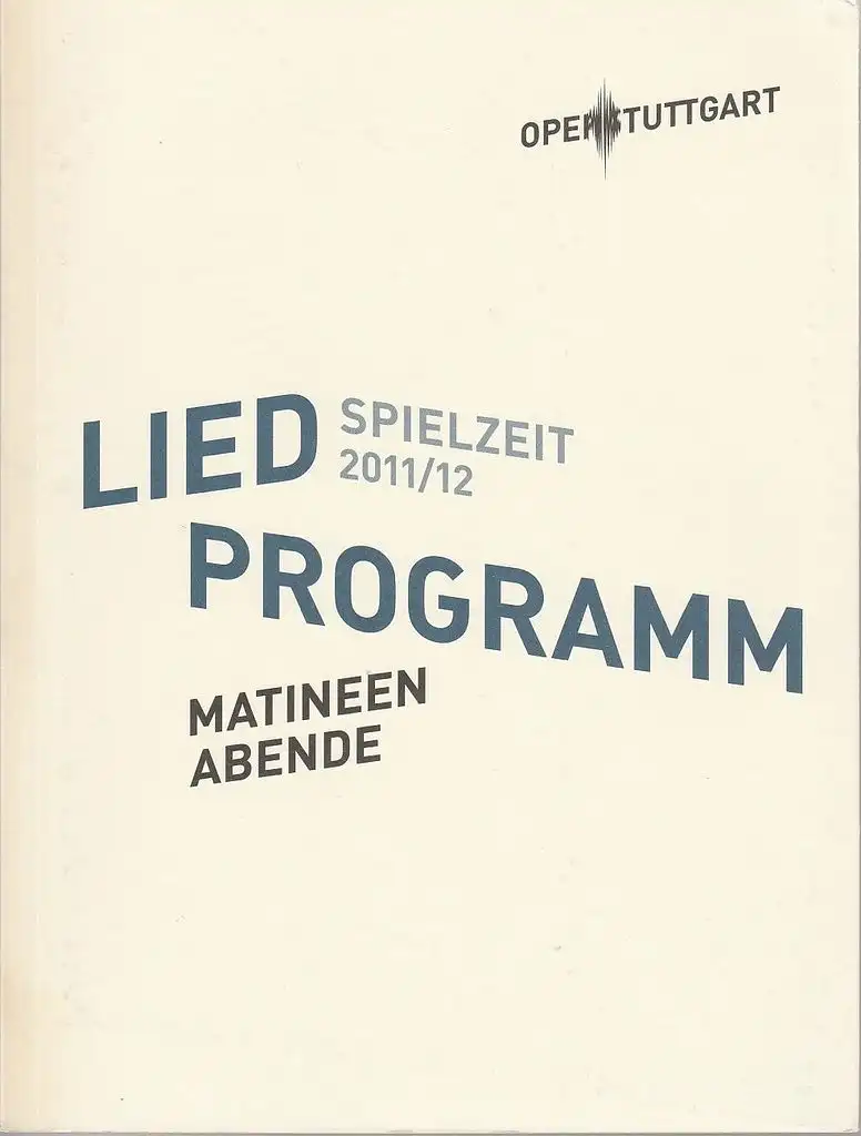 Oper Stuttgart, Jossi Wieler, Patrick Hahn, Sergio Morabito: Programmheft LIEDPROGRAMM MATINEEN /ABENDE Spielzeit 2011 / 2012.