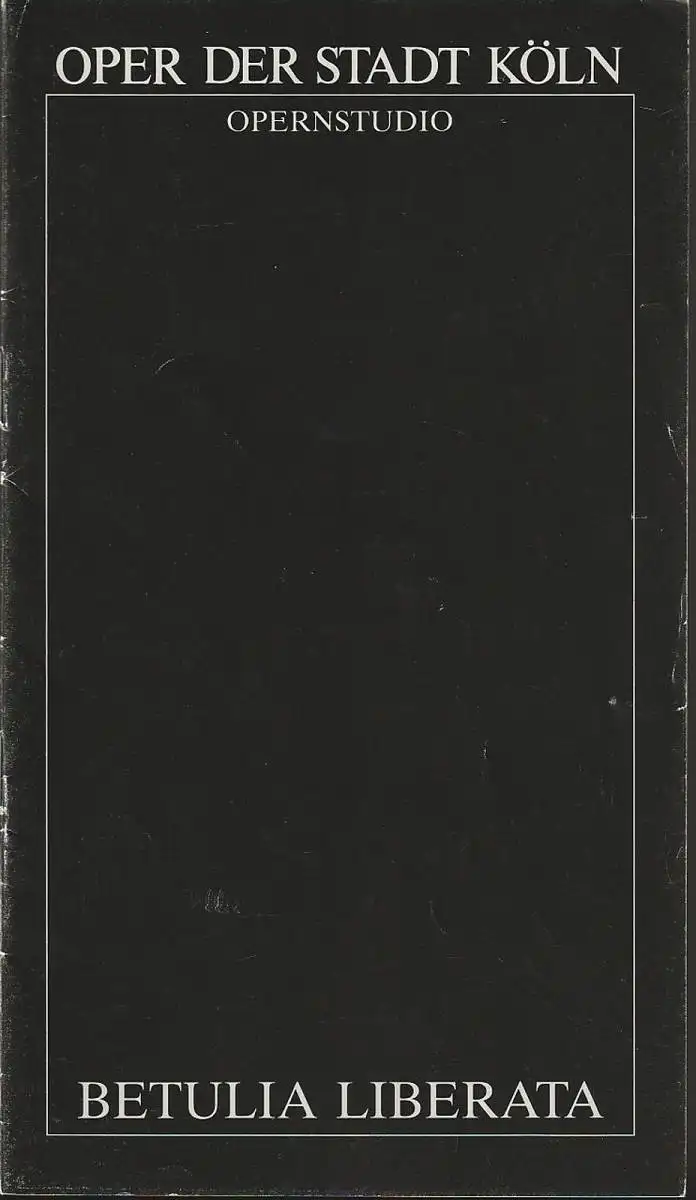 Oper der Stadt Köln, Michael Hampe, Kerstin Schüssler, Angelus Seipt: Programmheft Opernstudio Wolfgang Amadeus Mozart BETULIA LIBERATA Premiere 1. Juni 1989 und 4. Juni 1989 Trinitatiskirche.