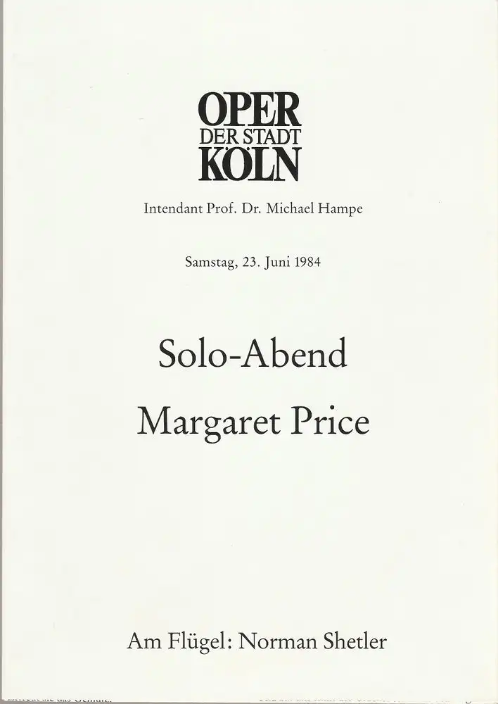 Titel:Programmheft SOLO-ABEND MARGARET PRICE Am Flügel NORMAN SHETLER 23. Juni 1984