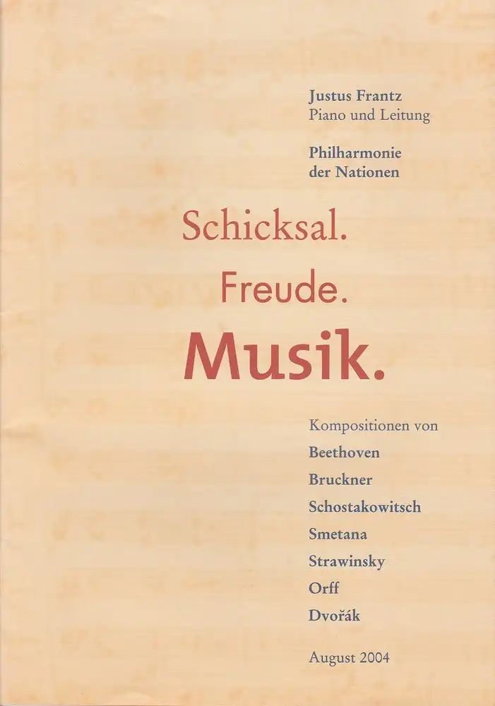 Titel:Programmheft Schicksal. Freude. Musik. August 2004