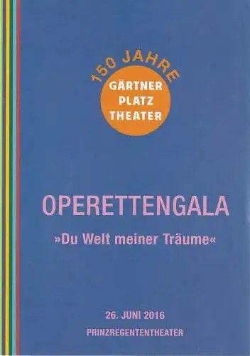 Staatstheater am Gärtnerplatz, Josef E. Köpplinger: Programmheft OPERETTENGALA DU WELT MEINER TRÄUME 26. Juni 2016 Prinzregententheater Spielzeit 2016 / 17.