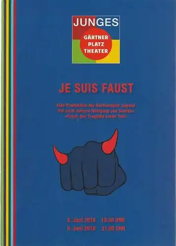 Staatstheater am Gärtnerplatz, Josef E. Köpplinger, David Treffinger, Jens Corvin, Marie-Laure Brian: Programmheft JE SUIS FAUST 8. und 9. Juni 2018 JUNGES Gärtnerplatztheater Spielzeit 2017 / 18.