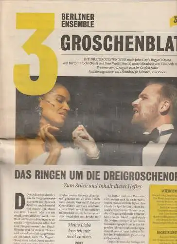 Berliner Ensemble, Oliver Reese, Sibylle Baschung, Nirgit Kern, Jörg Brüggemann / Julian Röder ( Fotos ): Programmheft GROSCHENBLATT 3 Brecht / Weill DIE DREIGOSCHENOPER Premiere 13. August 2021 Großes Haus Spielzeit 2021 / 22.