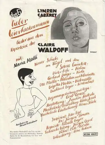 Friedrichstadtpalast Berlin, Wolfgang E. Struck, Helene Beyer, Birgit Swensson: Theaterzettel LIEBER LEIERKASTENMANN  Premiere 30.12. 1985 Das Ei.