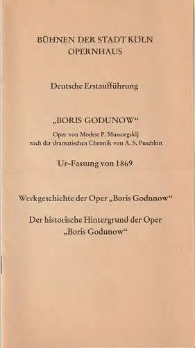 Bühnen der Stadt Köln: Programmheft Modest P. Mussorgskij Urfassung BORIS GODUNOW  19. März 1971 Opernhaus.