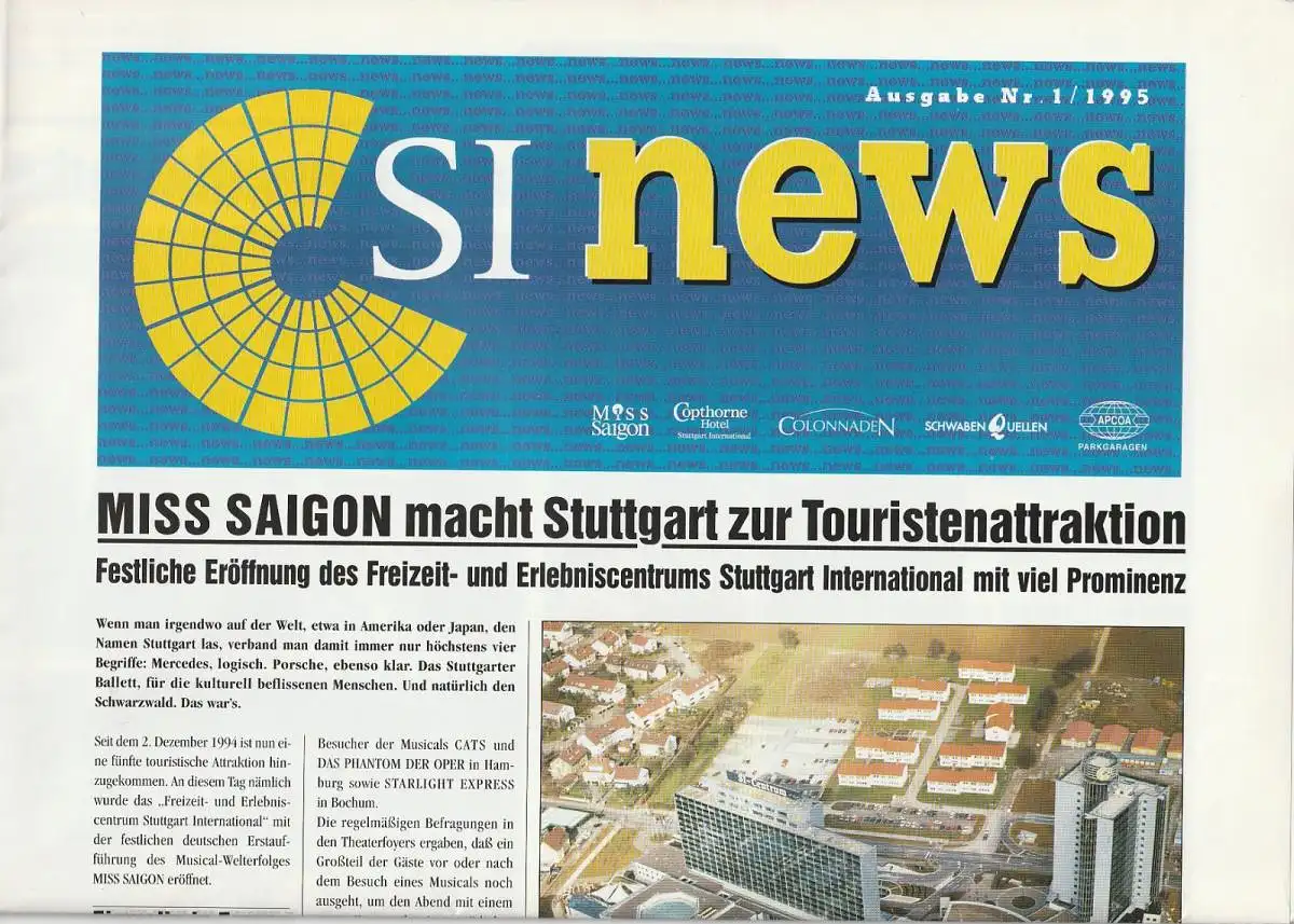 MISS SAIGON macht Stuttgart zur Touristenattraktion. Festliche Eröffnung des Freizeit- und Erlebniscentrums Stuttgart International mit viel Prominenz. - Theaterprogramm, Opernprogramm, Ballettprogramm, Musicalprogramm, Konzertprogramm, Theatermemorabilia, Programmhefte Sammlung, deutsche Theatergeschichte.