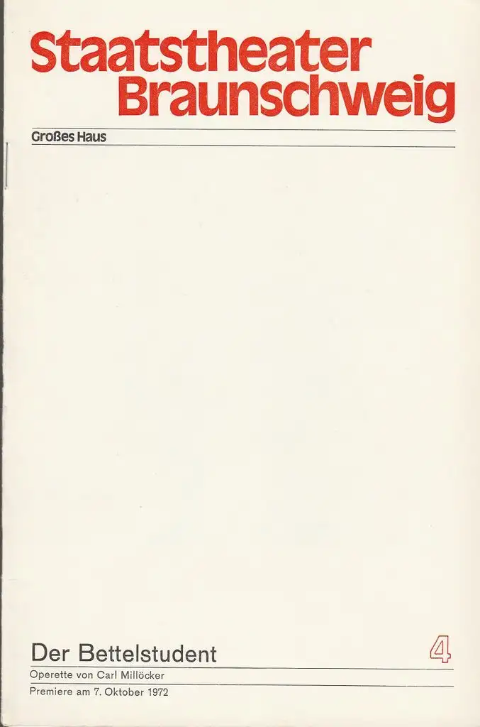 Titel:Programmheft Carl Millöcker DER BETTELSTUDENT Premiere 7. Oktober 1972 Großes Haus Heft 4