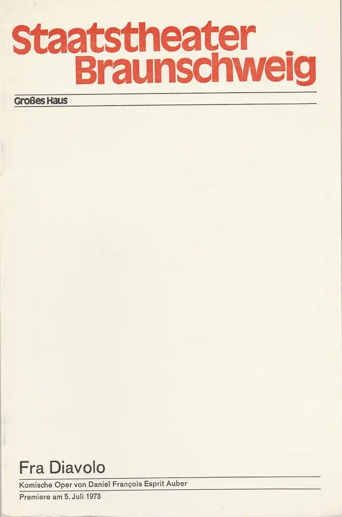 Staatstheater Braunschweig, Christoph Groszer, Helmar Harald Fischer, Ursula Siefken: Programmheft Daniel Francois Esprit Auber FRA DIAVOLO Premiere 5. Juli 1973 Großes Haus.