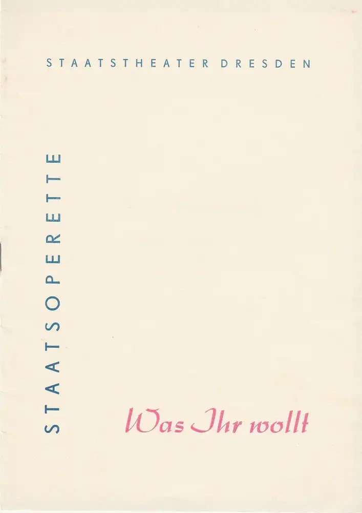 Staatstheater Dresden, Gerd-Michael Henneberg, Staatsoperette, Fritz Steiner, Rosemarie Dietrich: Programmheft WAS IHR WOLLT. Musical nach der Komödie von William Shakespeare Premiere 4. Juni 1964 Spielzeit 1963 / 64 Heft 6.