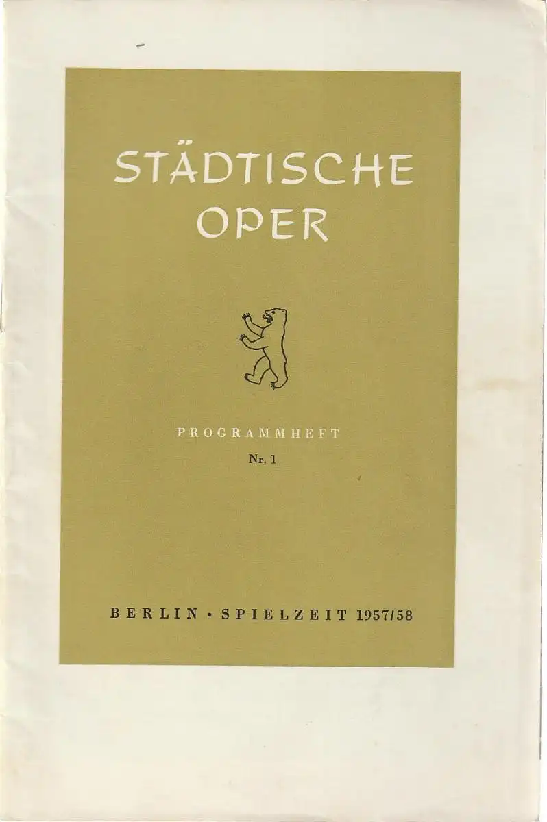 original Heft, Format ca. 23,5 x 15,5 cm, 14 Seiten, weitere zusätzliche Seiten, Szenenfotos aus Tannhäuser und verschiedenen weiteren Aufführungen, Rückblick Spieljahr 1956 / 57 , Spielplan-Entwurf 1957 / 58, Künstler Portraitfotos. Zustand: gut, diverse Umterstreichungen in den Spielplänen