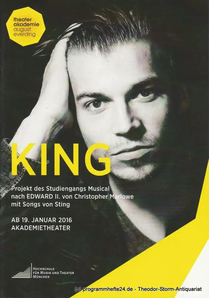 Theater Akademie August Everding, Katharina Nay: Programmheft KING. Projekt des Studiengangs Musica nach Edward II von Christopher Marlowe. Premiere 19.01.2016 Akademietheater.