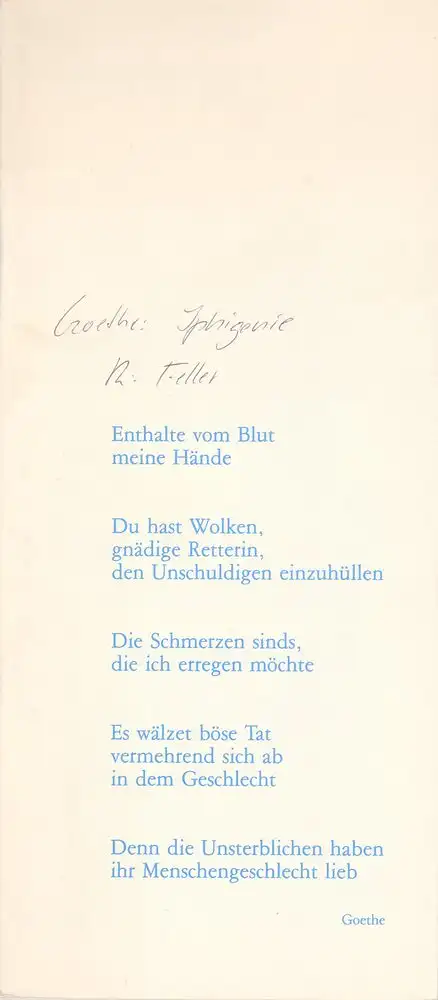 Titel:Programmheft Johann Wolfgang Goethe: IPHIGENIE AUF TAURIS