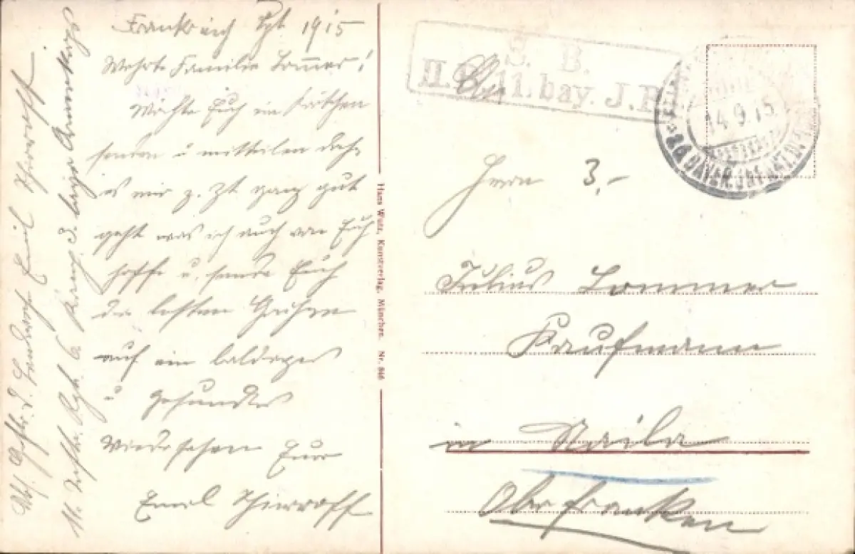 Zustand, siehe Scan, gelaufen, 1915 - ca 14 cm X 9 cm