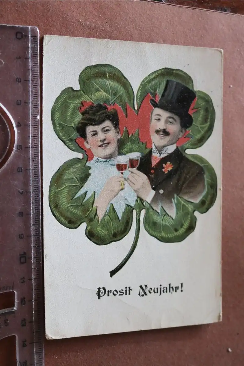 Biete hier eine tolle alte Karte - Prosit Neujahr - Kleeblatt - 1911 an