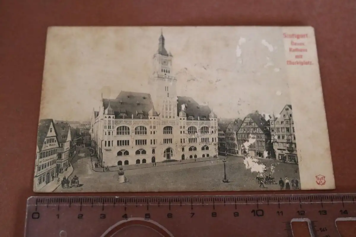 Biete hier eine tolle alte Karte - Stuttgart - Neues Rathaus mit Marktplatz 1905 an